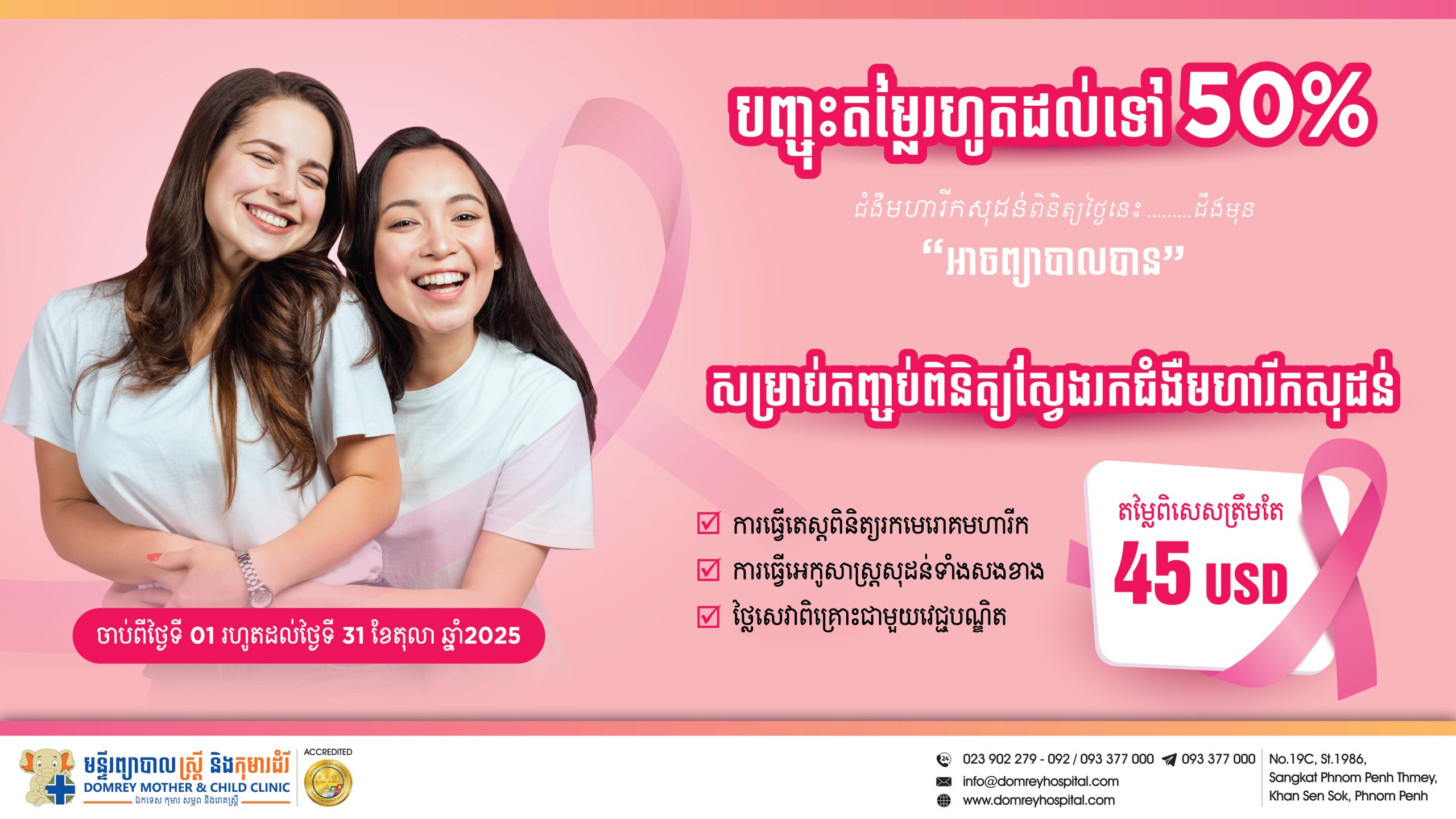 អបរអរខួបគម្រប់4ឆ្នាំរបស់មន្ទីរព្យាបាលស្ដ្រីនិងកុមារដំរី! Happy 4th Anniversary សម្រាប់បងៗស្រ្តី ដែលកំពុងស្វែងរកមន្ទីរពេទ្យដែលមានស្តង់ដារ និងសេវាកម្មល្អ ព្រមទាំងគ្រូពេទ្យមានបទពិសោធន៍ផ្នែក រោគស្រ្តី អាចអញ្ជើញមកមន្ទីរព្យាបាលស្រ្តី និងកុមារដំរីបាន! ក្នុងឱកាសអបរអរខួបគម្រប់4ឆ្នាំ របស់មន្ទីរពេទ្យយើងមានការបញ្ចុះតម្លៃទៅលើកញ្ចប់វ៉ាក់សាំងផ្ដាសាយតែ ៣០$ តែប៉ុណ្ណោះ ពីលើនេះទៀតលោកអ្នកនឹងទទួលបានកាតសមាជិកដំរីដោយឥតគិតថ្លៃ ចំពោះរាល់អតិថិជនគេងពេទ្យនឹងទទួលបានកាតសមាជិកដំរីហ្វ្រីៗ និងប្រើប្រាស់បានភ្លាមៗ ___________________________________________________ សម្រាប់ព័ត៌មានបន្ថែម ឬសម្រាប់ការណាត់ជួប៖ លេខទូរស័ព្ទ: 092 377 000 / 093 377 000 / 092 900 037/ 023 302 279 តេឡេក្រាមសម្រាប់ធ្វើការណាត់ជួប: https://t.me/DMCCMED តេឡេក្រាមឆានែល https://t.me/+9VlvNEGTimozMjRl